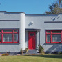 A house may not be able to wear red socks in support of Emirates Team New Zealand's America's Cup campaign, but plenty of them have red doors. Like this one, which (sort of) has a Team New Zealand colour scheme, using a contemporary yet fun scheme of Resene Mischka walls, Resene Gunpowder trims, and Resene Shiraz for the window frames and door. The colours were chosen by homeowner Megan Campbell.