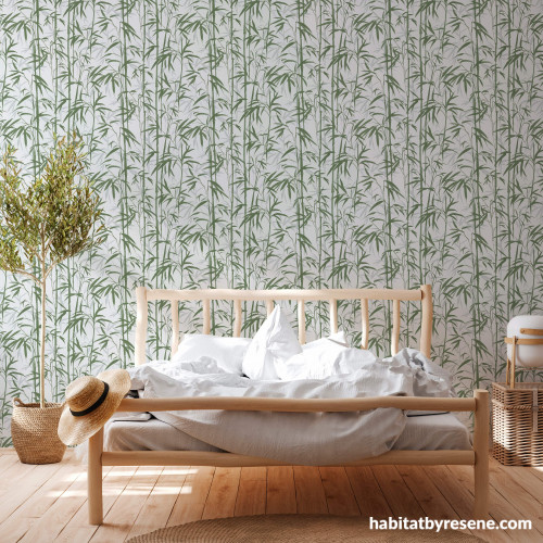 This tranquil room takes its inspiration from nature in many forms – the bamboo patterned wallpaper, wooden bedframe and floor, rattan décor, live greenery, and lush linens. If you love nature, having a nature-inspired bedroom gives you a sense of connection with the outdoors, even when you're inside. It can serve as a personal retreat where you can feel closer to nature, even in an urban environment. The serene colours of this wallpaper, design 379893_6 from the Resene Change Is Good Wallpaper Collection, pair well with greens like Resene Clover and Resene Highland, as well as neutrals like Resene Quarter Thorndon Cream, Resene Quarter Linen or Resene Merino.