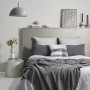 Sleep like a king or queen in this luxurious metallic bedroom. The wall is painted in Resene Cloud, floor in Resene Half Cloud, pendant in Resene Half Gravel, headboard in Resene FX Metallic Pure Pewter with Resene Chicago as the base colour. Side table in Resene FX Metallic Proton with Resene Copyrite as the base colour, vase in Resene Proton, ball and artwork in Resene Pure Pewter, bowl in Resene Cloudy and candlesticks in Resene Copyrite and Resene Pure Pewter. Duvet and pillowcases from Adairs, pattern cushion from Freedom, candles from Superette, flowers from Flux Boutique. Project by Vanessa Nouwens, image by Bryce Carleton.