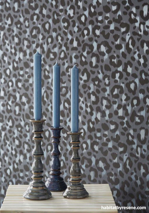 A leopard can’t change its spots, but you can change up a room in less than a day using a feature wallpaper. A feature wall in the bold pattern of Resene Wallpaper Collection 356181 is an easy and quick way to make a style statement. While they may seem brash, think of animal prints as Mother Nature’s neutrals. Spots and stripes are designed to camouflage big cats in the wild and they work well when paired with natural materials and earth tones. They can be a neutral backdrop for a gallery wall of artworks. When using a statement animal print wallpaper it’s best to use it on only one or two walls to stop the room feeling enclosed.