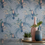 The pale blue toucans in Resene Wallpaper Collection 1907-135-01 will make your room soar to new heights. Pair this fun and stylish design with neutral walls such as green-tinged white Resene Rice Cake, lush houseplants and elevate the look with classic ornaments such as ceramic ginger jars.