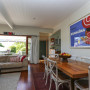 Lisa and Danny’s sun-drenched Edwardian Villa was built in the 1900s and boasts a fabulous layout and flow. The walls in this open-plan living, dining and kitchen area are a custom-made Resene Lisa’s Special Mix with Resene Daydream used in the kitchen to the right, along with Resene Sherwood Green trims.