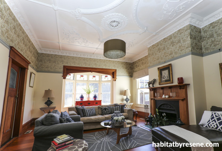 I wanted to create a home that is a haven, but also a home that has character, colour and personality in each room. I didn’t want to pretend the house was something it’s not and turn it into something soulless or modern. It was important to embrace the age of the home and style it with this in mind but not recreate a museum. Traditionally these homes are quite dark, so we played on traditional ideas but in a contemporary way, flipping the wallpaper to above the picture rail and paint below. With such high walls, I could play with patterns and bolder colours. It was great being able to meet with Nikki at Resene and have her help pull all our ideas together.