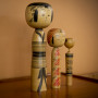 Japanese wooden dolls sit on a Scandinavian sideboard in the dining room, backed by walls in Resene Roasted Orange.