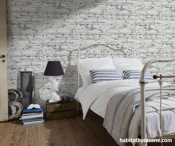 Pare down your possessions to up your bedroom’s relaxation factor. Wall panels in Resene Wallpaper Collection MO1501. Pair with bring white trims and doors in Resene Alabaster and timber floors stained in Resene Colorwood Uluru to get a similar look.