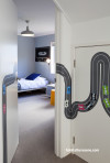 Oskar's bedroom is painted with Resene Casper and decorated with wall decals from Paper Room.