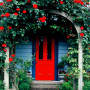 Front doors should be painted in an accent colour - a strong, dramatic, bold shade – that often won’t be repeated anywhere else in the house. Bright, vibrant colors draw the eye to the front of the house and can be echoed in the colours of flowering plants or in architectural detailing.