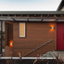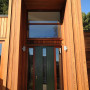 This front door in Resene Pohutukawa which sits alongside rich cedar weatherboards in a Wellington addition designed by Herriot + Melhuish: Architecture. The roof fascia above is Resene Half Masala.