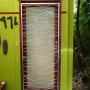 Resene Burgundy trims and cladding in Resene Happy Hour add to the fun of this unassuming entrance. A quirky security door by Dora Doors, in their Craggy design gives another visual element but with a very practical application.