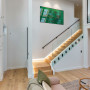 Connie & Rach’s elegant staircase features Resene Barely There walls, ceiling and trim which create the perfect backdrop for their large art piece.
