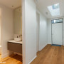 The judges loved the skylights as they walked into the entranceway. “You’ve got some great light through here with the skylights,” says Chris. Ann-Louise agreed, complementing Tim & Arthur’s choice of art and spacious powder room.