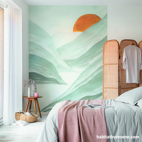 Whether painted or wallpapered, a wall mural can offer the perfect dreamy escape when you need one, especially in a place of relaxation such as a bedroom or living area. Resene Wallpaper Collection ONB102726002 sets the tone for daydreaming and will have you feeling joyous first thing in the morning and last thing at night. Pair adjacent walls and accessories in hues like Resene Carefree, Resene Bone, Resene Coral Tree, finish flooring in Resene Colorwood Breathe Easy and refresh wood or rattan furniture with Resene Colorwood Bask to complement the mural’s dreamy colour palette.