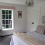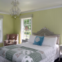 Sheryl and Kevin's bedroom is painted in Resene Rice Paper as the feature colour and Resene Rice Cake for the rest. Generous window space allows for the couple to enjoy views of their glorious outdoor space.