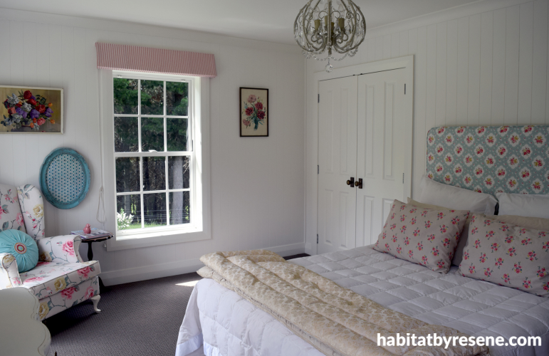 Another bedroom is painted in Resene Spanish White on the walls, and the rest in Resene Rice Cake. The styling is constant throughout, with Sheryl intertwining new and old treasures giving the new-build a lived-in, homely feel.