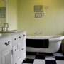 How versatile is this green? Resene Rice Paper looks just as pretty when paired with black and white tiling in the bathroom.