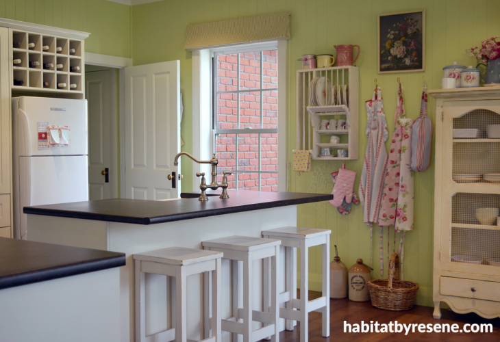 Sheryl loves second-hand shops and fills the home with her finds. But she loves the new also, especially her oversized butler's sink. The walls are painted in Resene Rice Paper. The rest is painted in Resene Rice Cake.