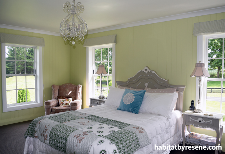 Sheryl chose Resene Rice Paper, a fizzy sherbert green, as the feature colour for the interiors, which gives the home a 1950s homely feel. With generous window space in all the rooms, looking out to the 1.6 hectares of their property, the colour is also a great match to the green outdoors.
