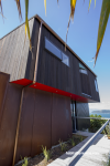 And the Resene Red Berry soffit, looking stunning against the stained cedar and corten steel.