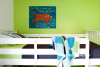 The white painted bed in one of the girls’ rooms is a recycled hospital bed from the Cambridge Lion's Shed. White and candy colours sit well with the dazzling fuschia wall.