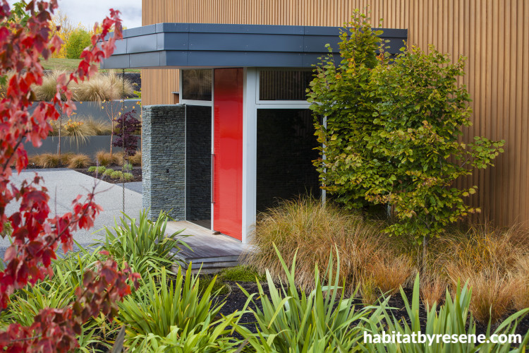Sticking to an otherwise earthy colour scheme, Simon and Brooke decided upon the cheeky red Resene Del Toro for their front door, giving it a wonderful pop of colour. Keep an eye out for our feature on the Wakatipu holiday home, and why the couple specifically chose red for the front door, in the next issue of habitat (out later this month).