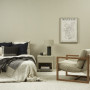Warm your world up with a colourway in off-whites. These walls are painted in Resene Tea and the floor is painted in Resene Blanc. Bedside table in Resene Bison Hide, lamp in Resene Bison Hide and Resene Black. Bowl in Resene Black and vase and large frame in Resene Tapa. Duvet cover and cushions from Adairs, chair from Freedom, throw and rug from Citta. Project by Vanessa Nouwens. Image by Bryce Carleton.