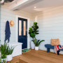 Open up to the idea of giving your entrance way a makeover. It’s the first thing your guests see when they arrive in your home and sets the tone for the rest of your house. Painting your front door a bold shade such as Resene Blue Night will give your home street appeal and it’s a job that can be done in only a few hours – perfect with guests arriving for a long weekend. This bold door is paired with weatherboards in Resene Half Periglacial Blue, trims in Resene Alabaster and a bench seat in Resene Coast to set the scene for a home with coastal charm.