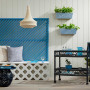 This outdoor wall is in Resene Triple Merino, with a screen in Resene Kashmir Blue to add a pop of colour. The breeze blocks create a versatile seat and are painted in Resene Triple Merino. The boards are in Resene Tiri and the trolley and woven tray table are in Resene Indian Ink. The planter boxes are painted in Resene Smokescreen with dots in Resene Indian Ink. The medium pot plant is in Resene Alabaster, while the smaller pot plant is painted in Resene Kashmir Blue. Accessories are stylist’s own. Project by Kate Alexander. Image by Bryce Carleton.