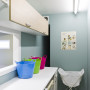 A quirky retro look has been given to the laundry with its Resene Metamorphis walls.