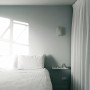 Geordie and Emma used soft, timeless Resene Quarter Powder Blue in the master bedroom for a relaxing vibe.