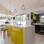 Designer Tracy Murphy updated the kitchen in her Lockwood home with walls in Resene Half Merino and a vibrant centrepiece in Resene Spotlight.