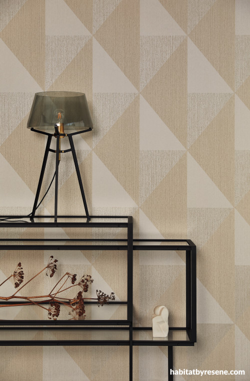 Whether you’re after a bold, contemporary look or something a bit more retro, geometric designs are a versatile choice. Resene Wallpaper Collection A54901, with its striking combination of gold and black brings both glamour and energy to any room. Perfect for feature walls or statement ceilings, this design plays beautifully with light, creating a dynamic space that changes throughout the day. Pair this with chic hues like Resene Nero and Resene Element, or pops of colour like Resene Gorse and Resene Bird Flower.