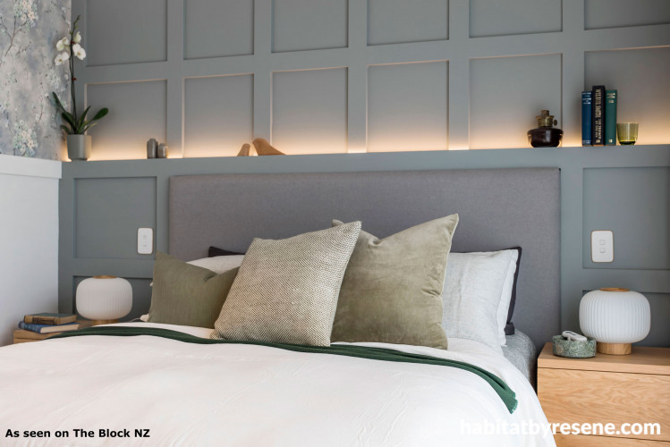 If you want further proof that battens are on-trend interior must-haves, look no further than this season of Three’s The Block. This bedroom is a great example of how to keep it interesting in the bedroom when it comes to design. An elegant floor to ceiling batten wall incorporates an elegant projected headboard. The horizontal lines in the arrangement ensure that this protrusion continues the flow to the upper wall. As bedrooms are smaller than main living areas, be careful not to overwhelm the space with too much bright colour and movement. With the extended batten headboard creating texture, opt for a deep neutral colour such as Resene Stack or Resene Stonewall. Finish the look with accent lighting to highlight the battens and surrounding walls and trim in crisp Resene Black White.