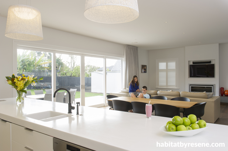 When the family of four moved back to New Zealand from Australia, they went house-hunting on Auckland’s North Shore where friends and family lived. They found a house before their relocation date with a big sunny section close to the beach, shops and schools. It was a character-filled transitional villa… but one that hadn’t been updated for decades.