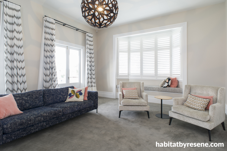 Lorraine was involved early in the project, helping to plan colours, built-in joinery, various accessories and fittings, and source new furniture. Jolie and Gareth were the perfect clients, making decisions quickly and not back-tracking. “You have to be fairly decisive on a project this size. If you start shifting things around, it can have major implications,” says Jolie.