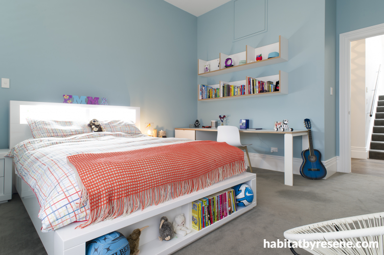 When it came to colour, the couple wanted a reasonably neutral palette but not to use the same colour throughout the house. They let children Sam (11) and Emma (10) choose their own colours – Resene Escape for her, and Resene Quarter Stack for him. Says Gareth: “Emma’s room gets a lot of comments from her friends. It’s a great colour, and it will last her as she gets older, too.”