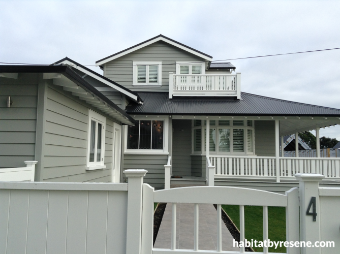 The couple’s interior designer door-knocked to find out the name of an exterior colour that had caught their eye – Resene Half Tapa for the weatherboards, teamed with Resene Quarter Sea Fog trims.