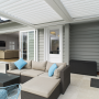 The outdoor fireplace is painted in Resene Eighth Tapa and protected with a louvred room. The weatherboards are Resene Half Tapa.