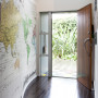 A world map wall mural stands out on a curved wall of Resene Alabaster in the entranceway.