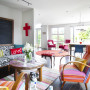 The family room is filled with vintage seating that has been recovered in modern patterned fabrics with a punch of bold colour. The Resene Quarter Silver Chalice walls are a quiet backdrop.
