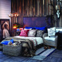 Go native American and alpine with this woodsy scheme featuring fur throws, antler light fittings and rustic furniture. Products available through Johnston Imports.