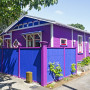How's this for a courageous scheme? Homeowner Fiona Sheffield certainly didn't hold back when she painted her Auckland house a combination of Resene Troubadour (purple), Resene Deep Koamaru (blue), Resene Jalapeño (red) and Resene Vista White.