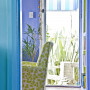 Another shot of a Kapiti Coast bach renovated by Robyn Renouf (our main shot is from the same house) using foreground walls in turquoise Resene Atoll and purply blue Resene Chetwode Blue behind. Both are beautifully offset by fresh lime green and white upholstery.