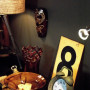 An artful arrangement of ornaments against a backdrop of Resene Triple Masala.
