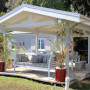 The exterior of Reef Cottage at Driftwood Seaside Escapes is painted in Resene Kensington Grey, with shutters painted in Resene Wan White.