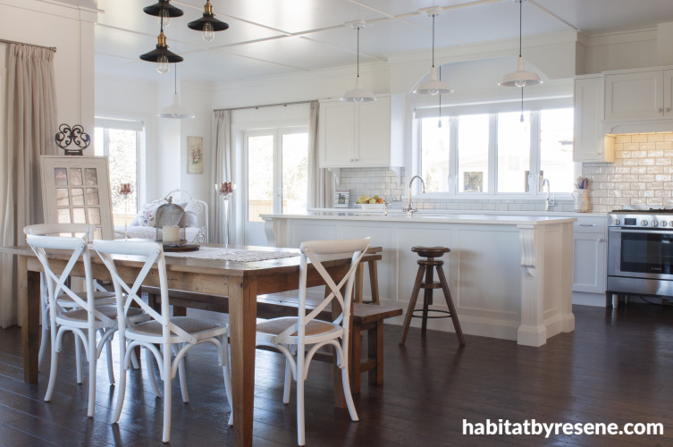 In keeping with the Hamptons feel, touches of old and new decorate this replica villa belonging to Kirsty and David Wraight, owners of David Wraight Cottages. The walls are painted in Resene Quarter Cararra. Image by Juliet Nicholas.