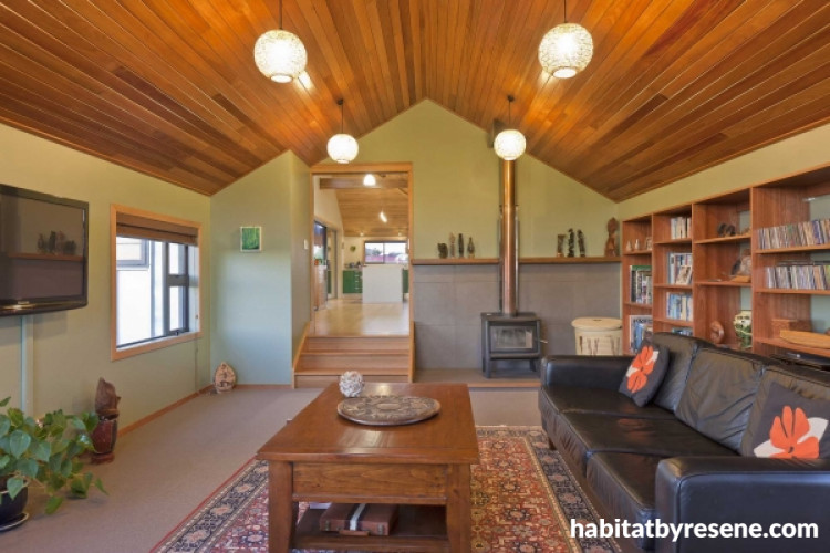 Resene Spanish Green has been chosen to complement the timber ceilings in the lounge.