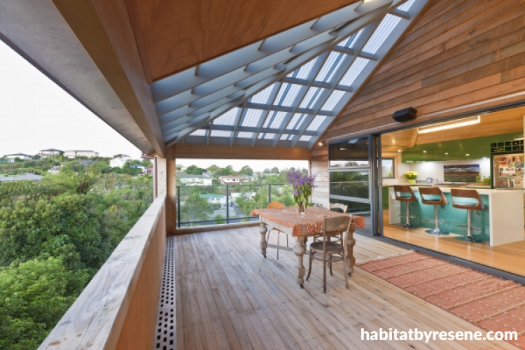 Andrew and Paula's favourite space is the upstairs deck, which has been designed to enable outdoor living on the upper level of the house, and take advantage of the views.