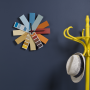 A fun clock made out of Resene paint colour cards sits against a wall in Resene Avalanche. The coat stand is painted in Resene Southern Cross. See here for details on how to make this clock.