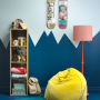 Rather than use a regular zigzag pattern to divide the colours of this teen room wall, a more random mountainous profile was chosen by stylist LeeAnn Yare. Resene Prussian Blue is used on the bottom, with Resene Eskimo on top. Adding to the fun, a locker-shaped shelf from Target North Shore is finished in Resene Solid Gold from the Resene Metallics and Special Effects range, and the back wall of each shelf decorated with wallpaper from the fun Boys & Girls 4 wallpaper collection. LeeAnn's video walks us through the project.