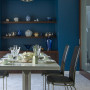 Resene Prussian Blue is used again, in this sophisticated dining room designed by Mona Quinn of Callidus Architects for a Wellington Arts and Crafts style house. Combined with dark oak shelves, it beautifully offsets the owners’ collection of blue china and treasured family heirlooms, and reflects the house’s seaside location. The trims are finished in Resene Alabaster.